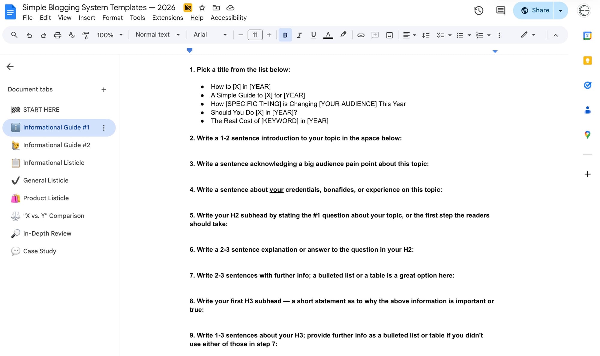 - Delete the template instructions and prompts from your draft, leaving you with a clean, publication-ready post.